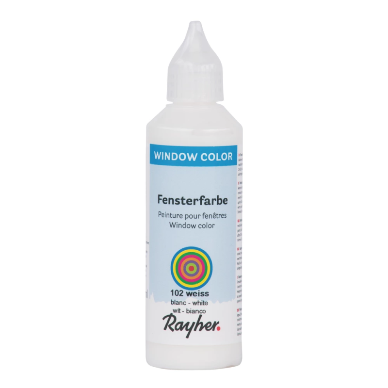 La peinture pour fenêtre Rayher en blanc, d'une contenance de 80 ml, fait partie de la série "Window Color easy paint" et convient parfaitement pour des images de fenêtre créatives et des décorations sur des surfaces lisses comme le verre, les miroirs ou le plastique. La peinture est à base d'eau, sèche de manière transparente et brillante et se décolle et se repositionne facilement après le séchage.L'application n'est pas compliquée : Les motifs peuvent être appliqués directement sur la vitre ou sur des feuilles de peinture spéciales. Après le séchage complet (environ 24 heures), les images peuvent être retirées avec précaution et placées à l'endroit souhaité. La peinture est résistante à la lumière et conserve sa luminosité pendant longtemps.